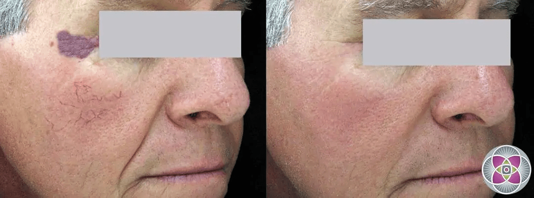 We have successfully removed many hemangioma birthmarks with our laser protocols.Port-wine stains are typically dark red-purple. They’re made of a tangle of micro-blood-vessels near the surface of the skin, which did not grow normally. They range in size from a small coin to covering a large area of the body and are usually flat and smooth.