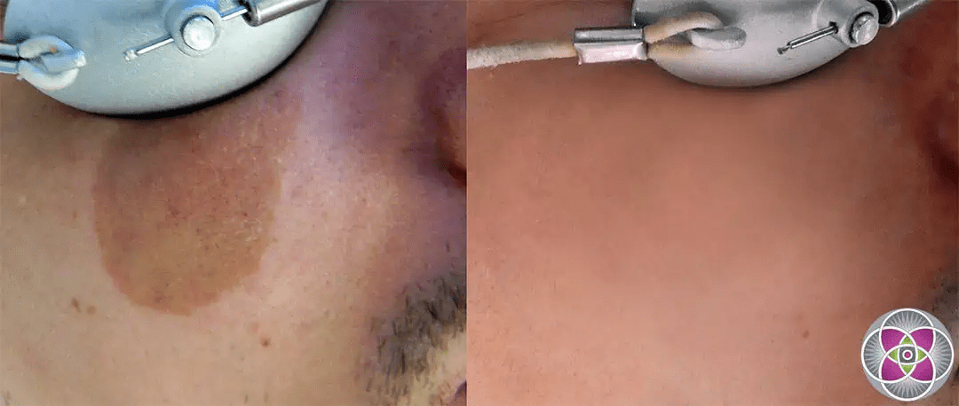 Depending on the extent of melanin in the birthmark, a series laser birthmark removal treatments are typically required in order to remove all the excess melanin and bring your skin back to its normal color.