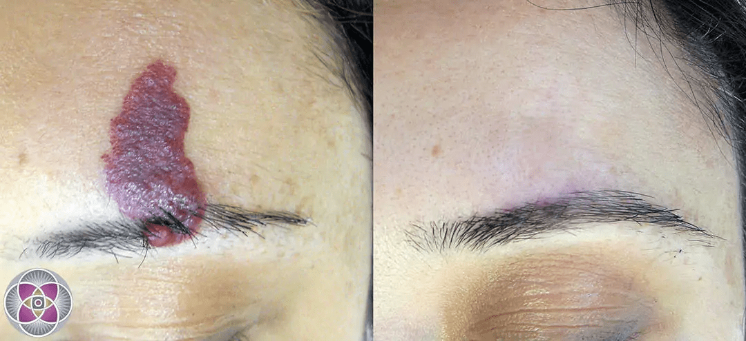 Because abnormal blood vessels making up a hemangioma occupy space in the deeper layers of the skin (dermis), small indentations may appear where the abnormal veins once were. These small indentations, or pockmarks, are caused by space left unfilled when abnormal blood vessels collapse. This is typical of thicker hemangiomas that have a multi-layered and complex tangle of abnormal blood vessels penetrating deeper into the collagen structure of the dermis. Once the hemangioma has been removed, our collagen regenerating protocols can be used to heal damaged collagen left by the hemangioma, restoring a smooth texture to the skin.