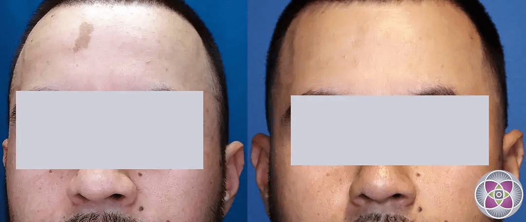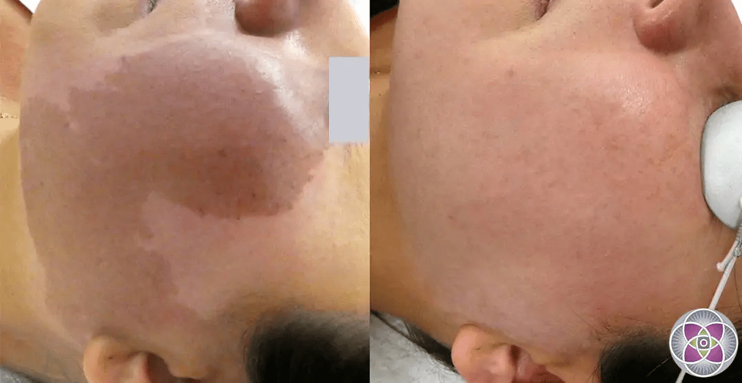Whichever the cause, the focus of treatment will be to get the white patch of skin to start producing more melanin. This will help to blend the white patch of skin with the skin around it. Unfortunately, these types of treatment are not “sure-fire” methods and work only about 50% of the time. Micro-needling would be the “low-tech” method. The use of an Excimer laser would be the “high-tech” method.