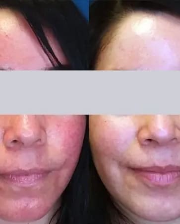 A visible difference in the appearance and amount of broken capillaries will be noticeable immediately after the first treatment. Most of our patients are surprised at just how red their skin was prior to treatment.