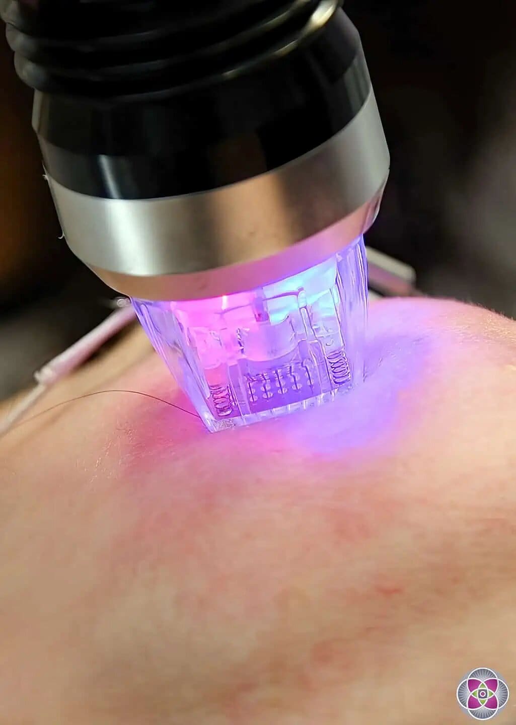 Similar to microneedling, RF Microneedling has tiny little microneedles that go into the skin. What makes RF Microneedling special is that its microneedles are designed to deliver radio frequency energy deep into the skin.